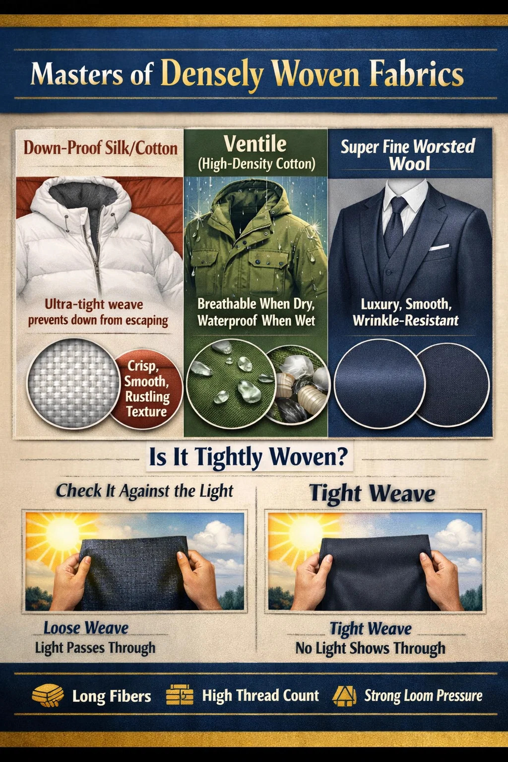 Rahasia Kepadatan: Menggunakan serat kapas terpanjang dan terbaik, ditenun di bawah tekanan yang sangat tinggi untuk menekan celah di antara benang hingga hampir tidak ada.